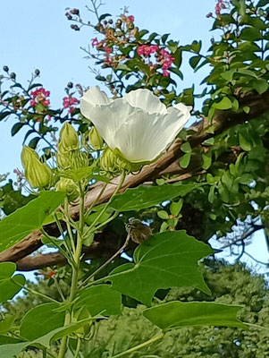 市川中山の浄鏡寺では芙蓉の花が綺麗に咲いています。蝶もとまり季節を感じさせてくれます。