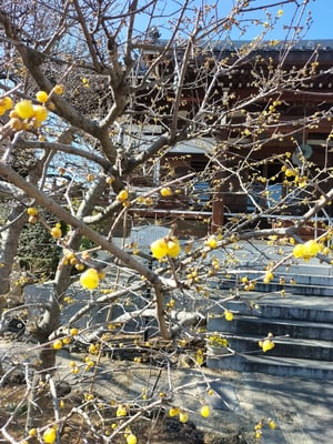 本堂前の蝋梅が開花しました。